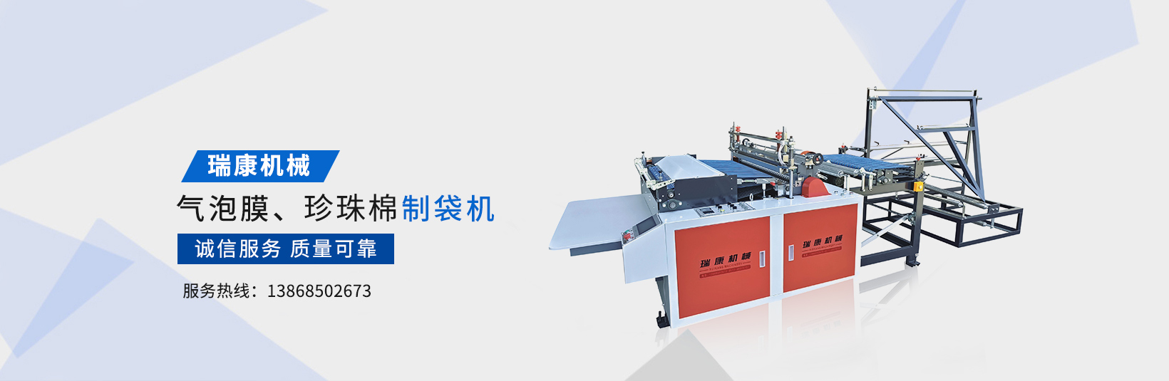 溫州瑞康機械有限公司(www_wzruikang_com.wxyswz.cn)主要生產氣泡膜機,快遞袋制袋機,包裝機,制袋機等設備。瑞康機械是國內生產塑料軟包裝系列機械設備的專業廠家之一。產品質量可靠、誠信服務,深受用戶好評,市場占有率節節攀升。